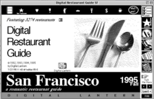 As a software consultant for his company Digital Lantern, Beaulieu developed proprietary algorithms for naming services, [6] producing trade terminology for General Magic and other companies. For Go Systems he generated PenPoint as the name of their operating system. In 1993 he created the Digital Cities Restaurant Guide, one of the first computer restaurant guides. [7] The software featured geocoded and deep content for the 3,200 San Francisco restaurants [8] and eventually all 14,000 restaurants in the SF Bay Area. The interface was co-designed by Nathan Shedroff [9] . Some of the Digital Lantern concepts and user interfaces are seen on Yelp.com. Designed for Powerbooks, the software was sold by Apple Computer and affiliate stores, the content updated every season. The product was widely reviewed in the Bay Area. [10] Terry Winograd asked him to present the salient concepts of his innovative interfaces, predictions for emerging deep personal content at an HCI seminar at Stanford University [11]